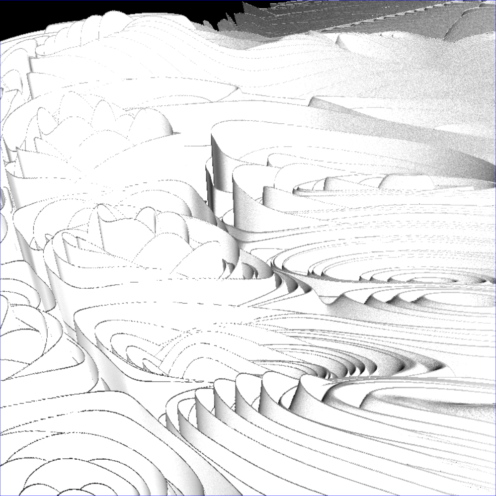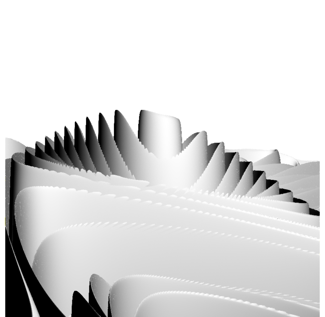 Some nice new pictures of crtrm, the C Real-Time Ray Marcher, running on the GPU. This was something I have been putting off for a long time for various reasons, partially because I have a more limited toolkit in GLSL, and partially because I didn't want to complicate an already complicated render engine. In fact, I had to duplicate the render engine, and now I have to maintain parallel versions. But the pictures I am getting suggest it is worth the time and effort.